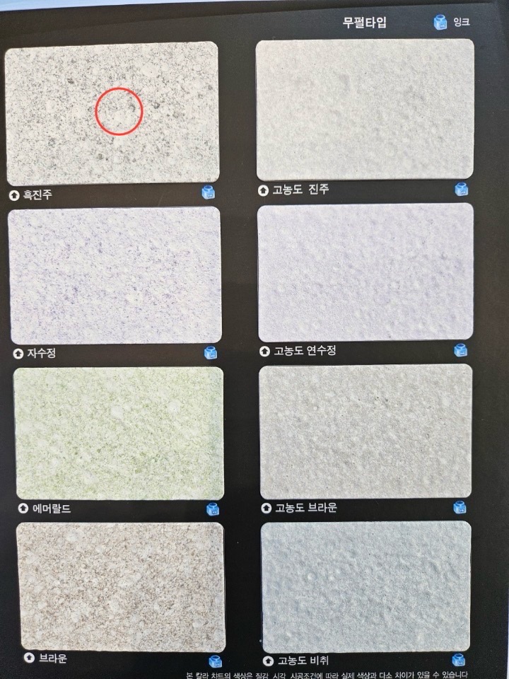 아래는 사진은 상담 받을때 선택한 흑진주 색상 입니다. (시공된 사진와 비교해보세요)